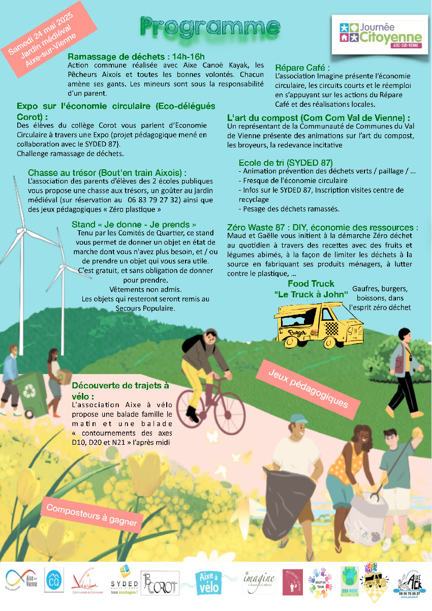 A cette occasion, plusieurs animations vous attendent : ramassage collectif de déchets, exposition sur l’économie circulaire, chasse au trésor, découverte de trajets à vélo, formation au compostage, jeux pédagogiques, initiation à la démarche Zéro déchet, répare café, présence du Truck à John…